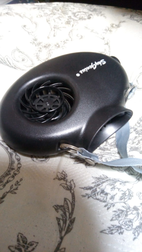 不格好ですが、工作しました。首からぶらさげるタイプのファンとラップの箱で作りました。