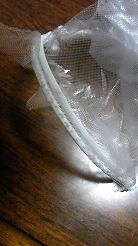 100円均一ショップで売っている20枚100円のビニール手袋の挿入口に開閉口を付けた物です。